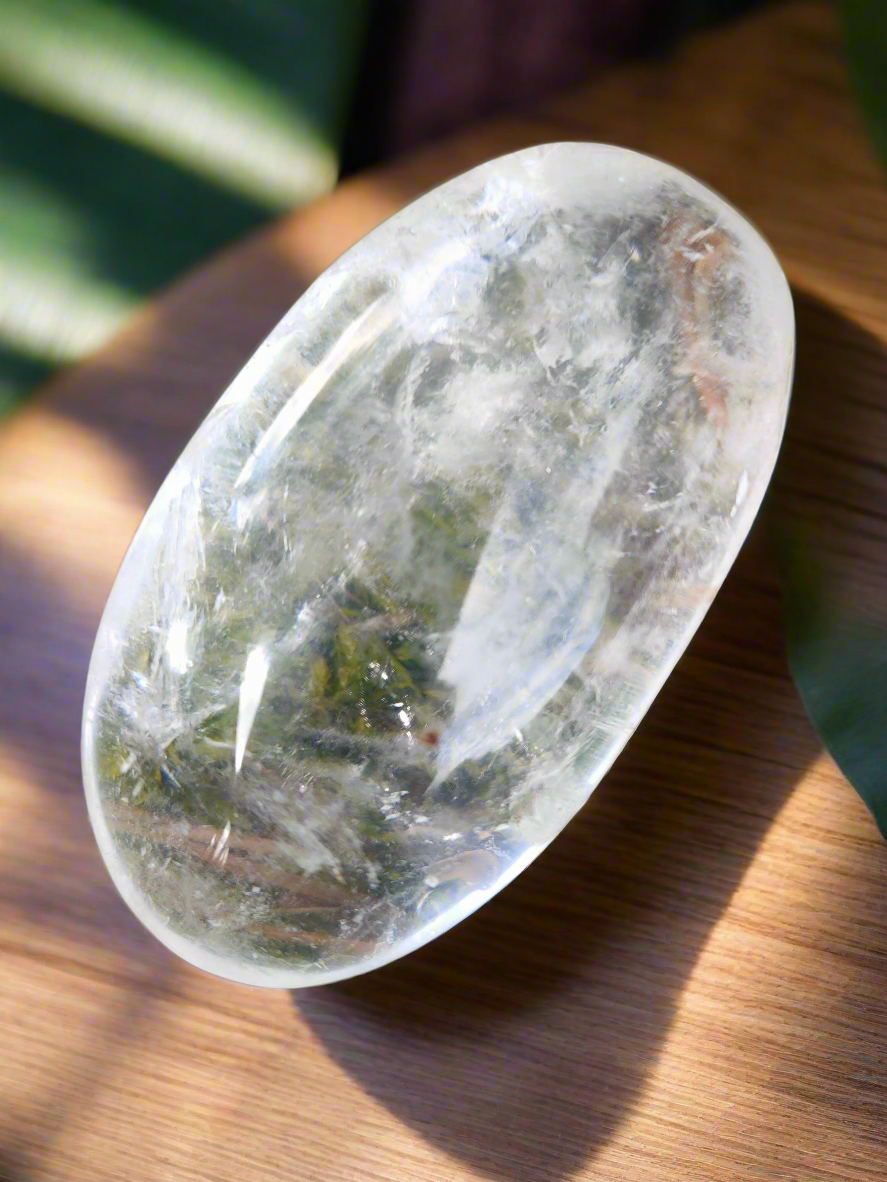 This beautifully polished Clear Quartz gallet is a palm-sized powerhouse of energy, clarity, and light. Gallets (or palm stones) are smooth, rounded crystals shaped for comfort, perfect for holding during meditation, placing on the body, or using in energy work.