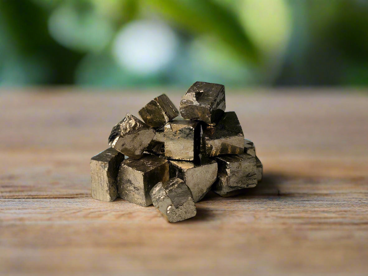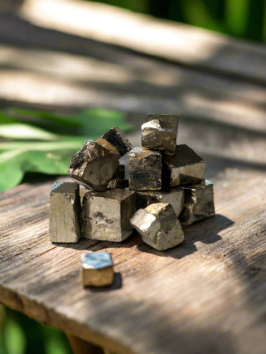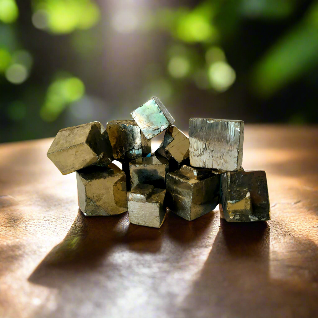 Each cube radiates protective energy, forming a shimmering shield around your aura to deflect negativity and energetic drain. Connected to the Solar Plexus chakra, Pyrite sparks your inner fire, reignites motivation, and empowers bold, decisive action.