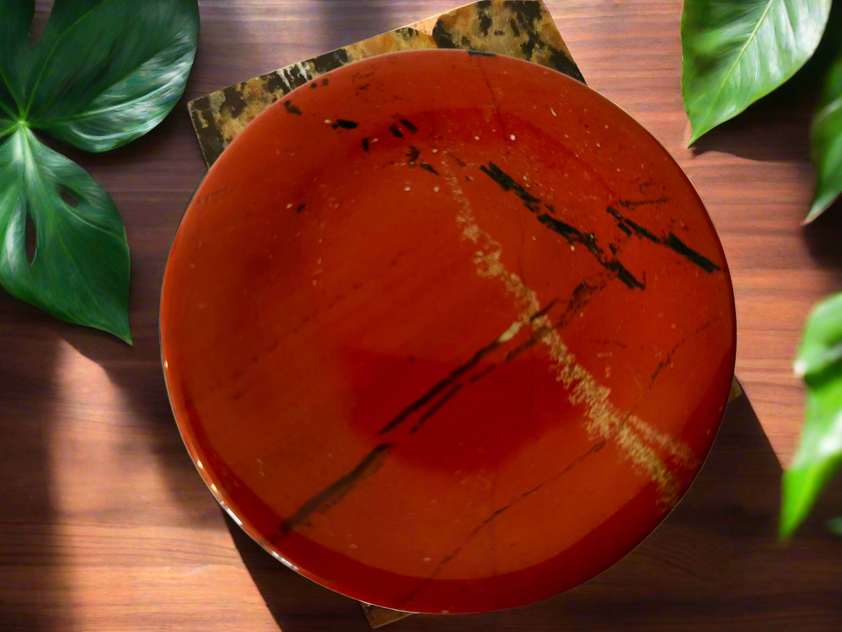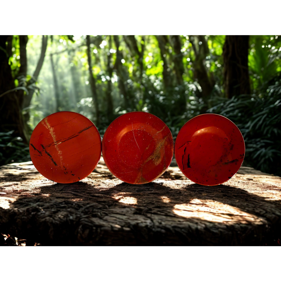 These beautifully polished 5cm Red Jasper saucers are perfect for holding your most treasured items from crystals and jewellery to incense cones, herbal blends, or small offerings.